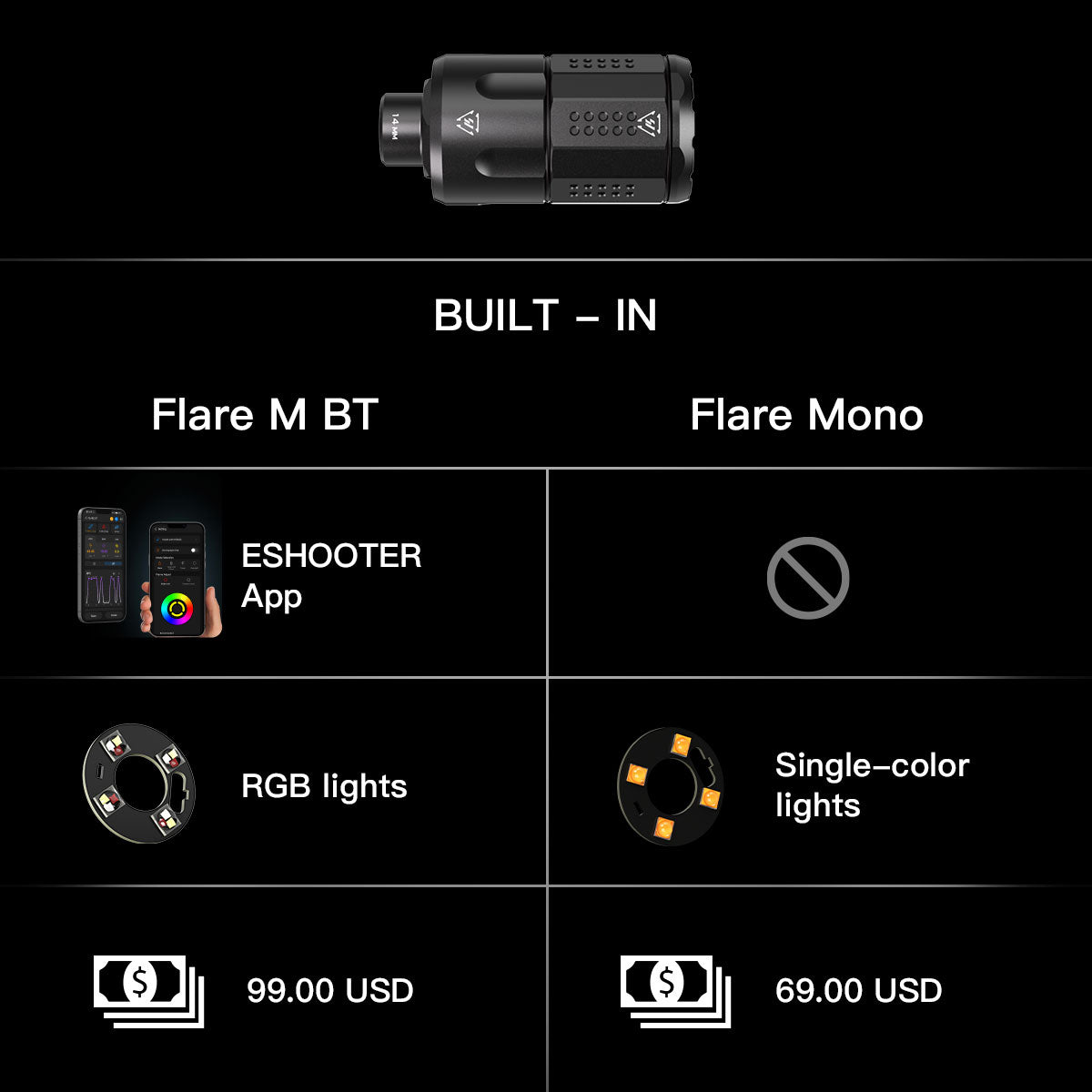 -Built-in Flare M BT / Mono Tracer Unit.
