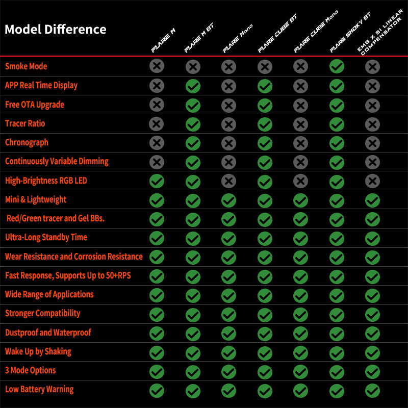 - 3 Mode options: Flame Mode, Tracer with Flame Mode, Tracer Mode.