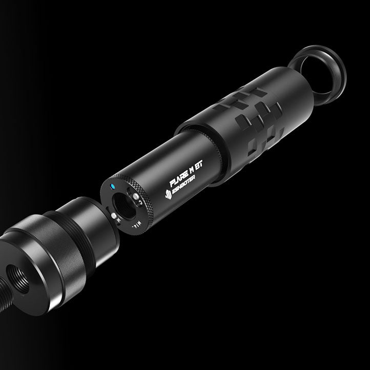 Our new Alloy Cases for Eshooter Flare M, M BT, and Mono tracer units. Crafted from high-quality aluminum alloy, these cases resemble sleek gun suppressors, complete with black color and detailed engraving lines.