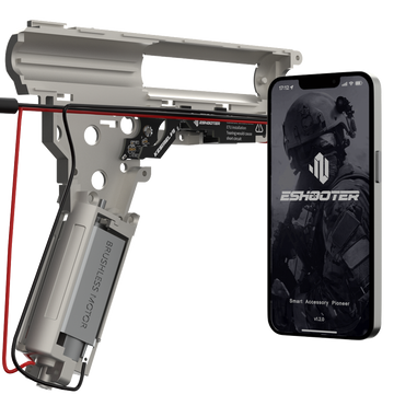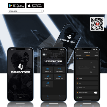 - Trigger Sensitivity Adjustment. 5 sensors detect trigger movement to control sensitivity, no disassembly is needed, Eshooter App wireless connection to adjustment.