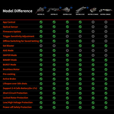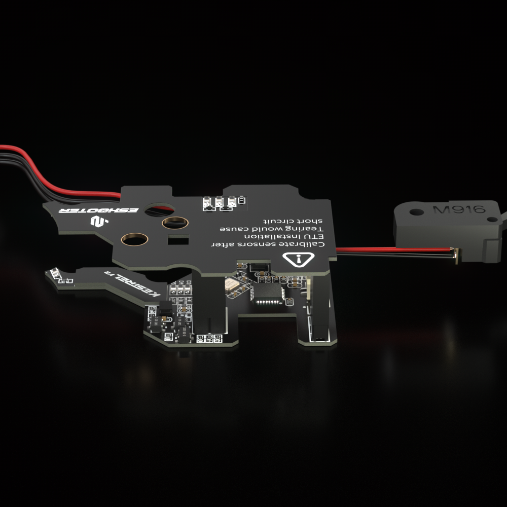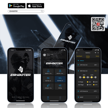 - Trigger Sensitivity Adjustment. 5 sensors detect trigger movement to control sensitivity, no disassembly is needed, Eshooter App wireless connection to adjustment.